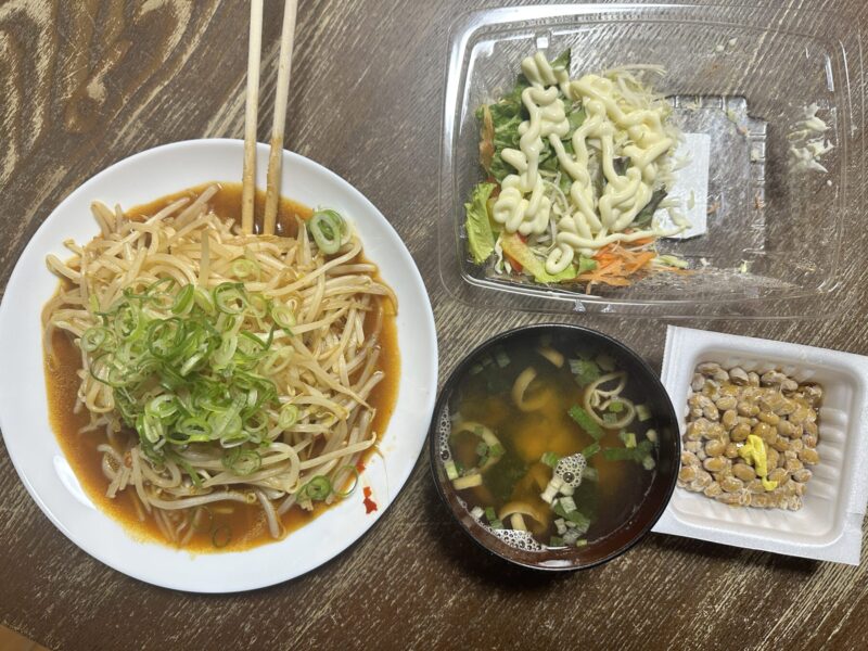 ベットに横になり時間が過ぎるのを待った。7時半をまわりゆっくりリビングに行った。今日はカレーだったようだ。ほのかな匂いが残っていた。冷蔵庫から賞味期限ギリギリのもやしを出して”ボッチ飯”を作った。