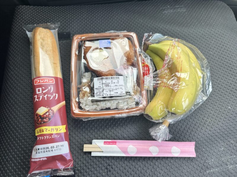 いつも行く、格安ドラッグストアで、199円弁当とバナナ、そして菓子パンは、半分昼食、半分は帰宅時の車中飯用だ。