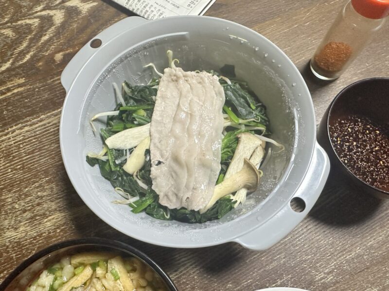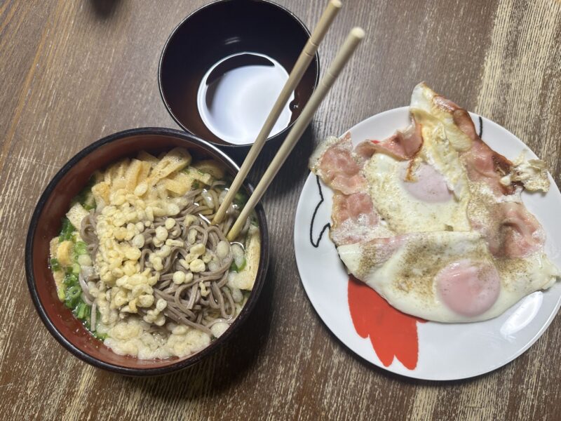今日の”ボッチ飯”は、期限切れの卵と期限切れマジかのベーコンを使った目玉焼きと蕎麦。それとほうれん草、もやし、エリンギ、豚肉の野菜蒸し。これで、ほぼほぼ2週間マーケットには行ってない。そしてこの健康飯。高血圧対策にもなると思ったが、少し目玉焼きに塩胡椒を振り過ぎた・・・