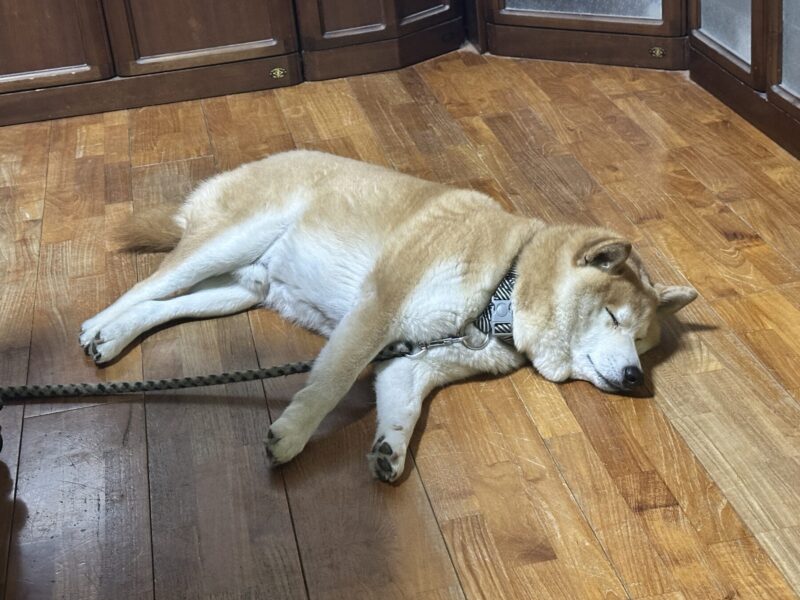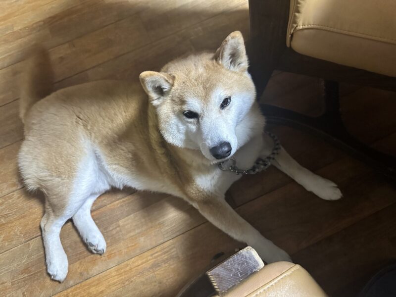いつもボッチ飯に付き合ってくれる、ペットの芝犬。今日も隣に来て、”一人で食べてないで、なんかくれ!”的に私をじっと見つめていた。んーーー、癒しにはなる。