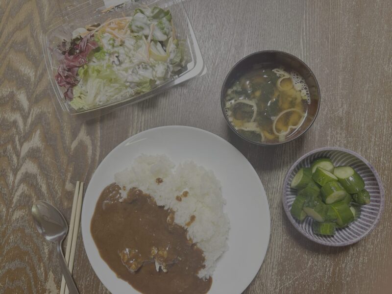 ”きゅうりの漬物”、コンビニの割引シールのものだ。今日の食費は、350円ぐらいだろうか・・・