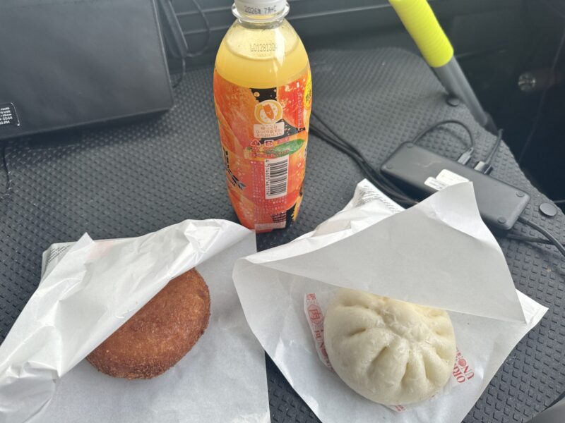 もう一本タダの目印を見て、久々に色付きのペットボトルを購入。そして、肉まんとカレーパン。500円程度だが、電子マネー決済のため現金移動はなし。でも資産が減ったのは間違いない・・・