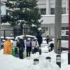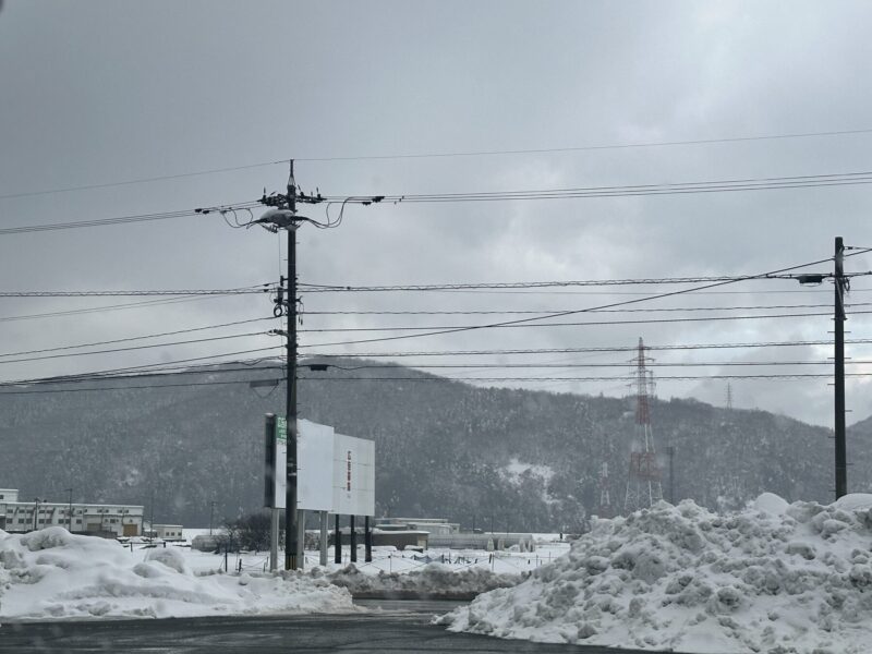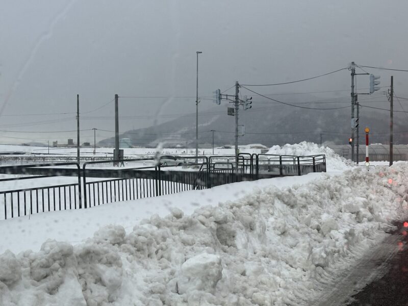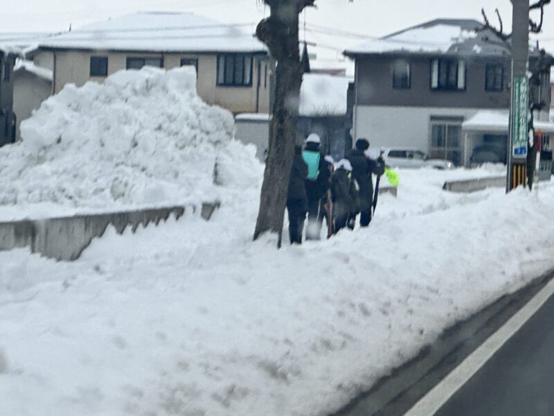 昨晩は雪が降らなかったようだ。雨が降っている。少しでも少しでもとけてくれたら良いのに・・・、児童のみんなも歩きずらそうだ、頑張れ〜!!