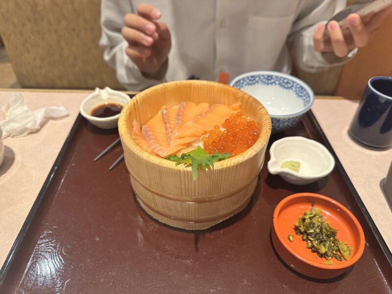 息子にそのことを告げると、「じゃ、サイゼリアか四六時中で」と言ってきた。サイゼリアは、息子のお気に入り店舗、四六時中は先日息子と開拓したこれも息子のお気に入り店。私は「どちらでも。決めればいいよ」というと、息子らしい、自分が立っている場所に近い方の店、四六時中を指差した。私は、「また?この前一緒に食べたじゃん!」と思ったが、息子の後ろをついて行った。息子は、一度気にいるとメニューは同じ。今回もテーブルに座るとすぐにタッチパネルで”サーモンいくらおひつ”を頼んで、お冷をとりに行った。