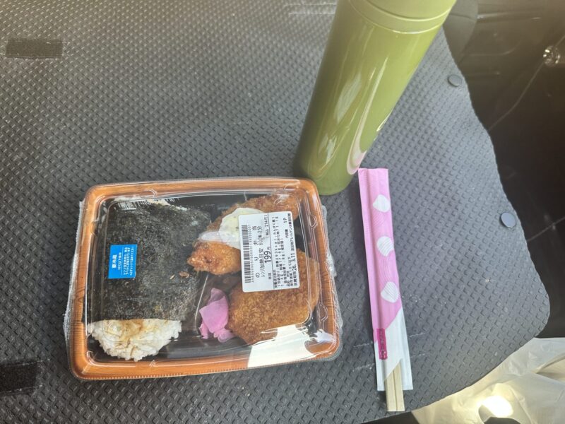 今日は天気がいい。気分転換に、お昼は外出して、格安弁当を食べよう!水分は、持ち出しミネラルウォーター!節約は神!