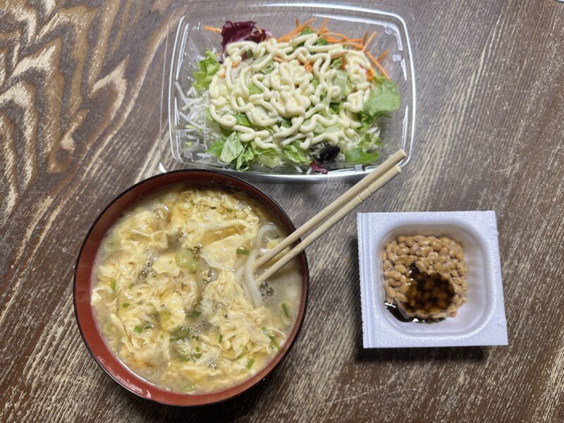 納豆とサラダは、私の戦利品。