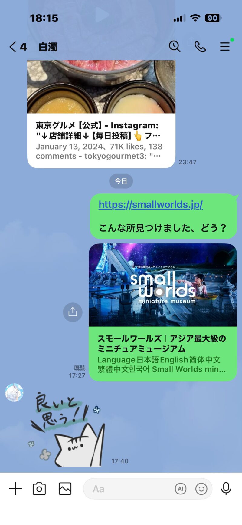 ただ今日は、LINEで一言会話した。