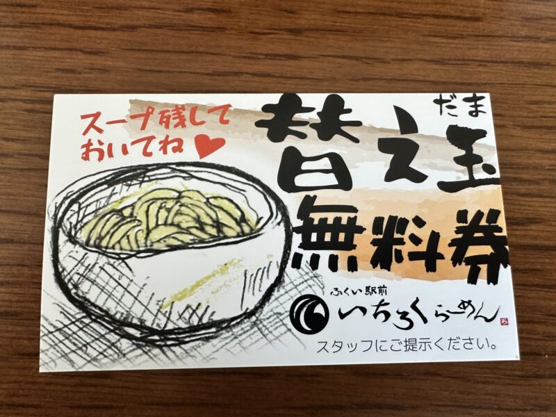 ”替え玉無料券”が当たった。当分来ないだろうなぁ・・・