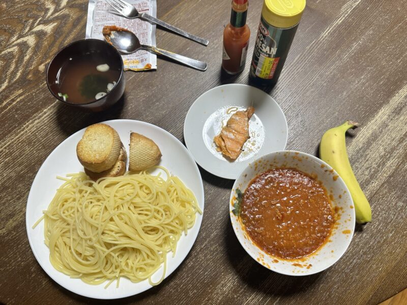 パウチソースを温めると、温めすぎて、レンジの中で、何度か破裂音。ブログにはふさわしくないような汚い写真(笑)。パスタは、100gの予定がおそらく150gになったのではないか・・・。そして、今日お昼ご飯で余ったシャケの切り身を、これまたレンジで温めた。ご飯にすればよかった・・・。今晩は、頭が回っていない・・・
