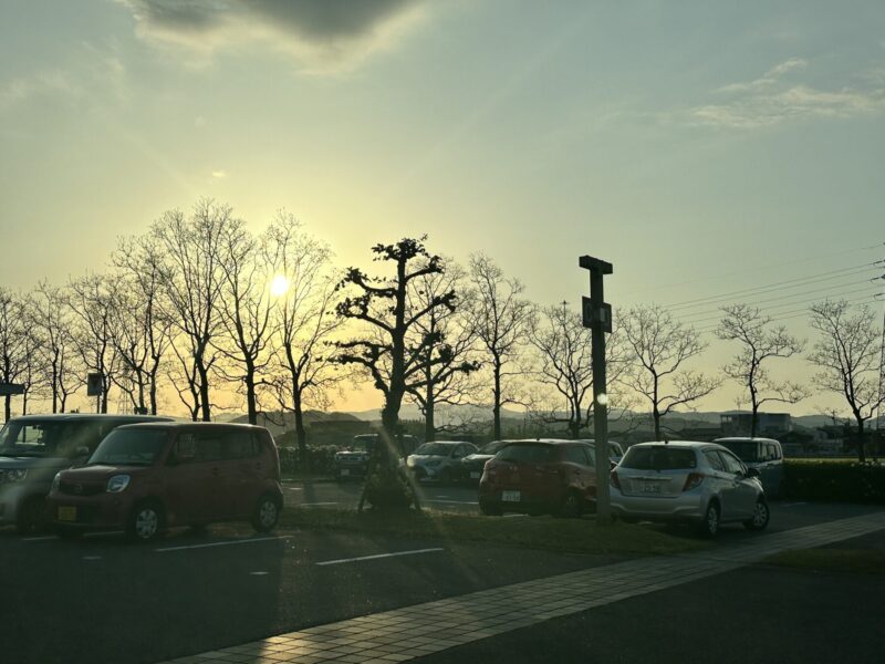夕陽が眩しい。さて、帰るには早い・・・。この時間寄るところは特にない。お金もない・・・、どうしよう・・・・