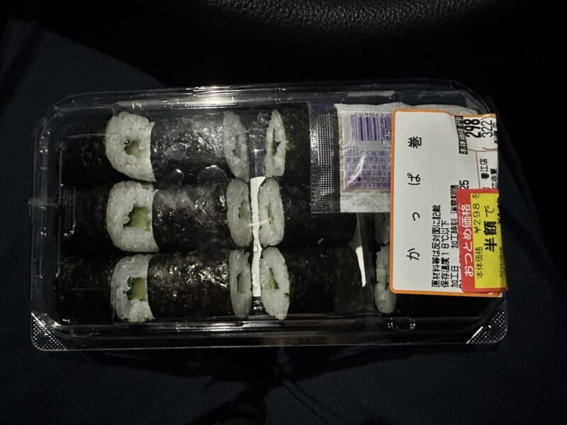 仕方なく、惣菜コーナーで最後の最後の残り物・・・”かっぱ巻”を半額で買って、車中で食べた。息子の好物だ。昔は、家にいる息子によくお土産で買って帰ったよなぁ・・・