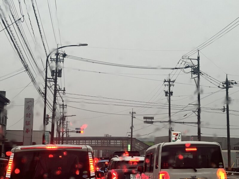中高生は、雨具なし、笑 この微妙な雨・・・、でも段々強くなって、お昼はひどい雨らしい!今のうちに早く学校に行ったほうがいいぞ!