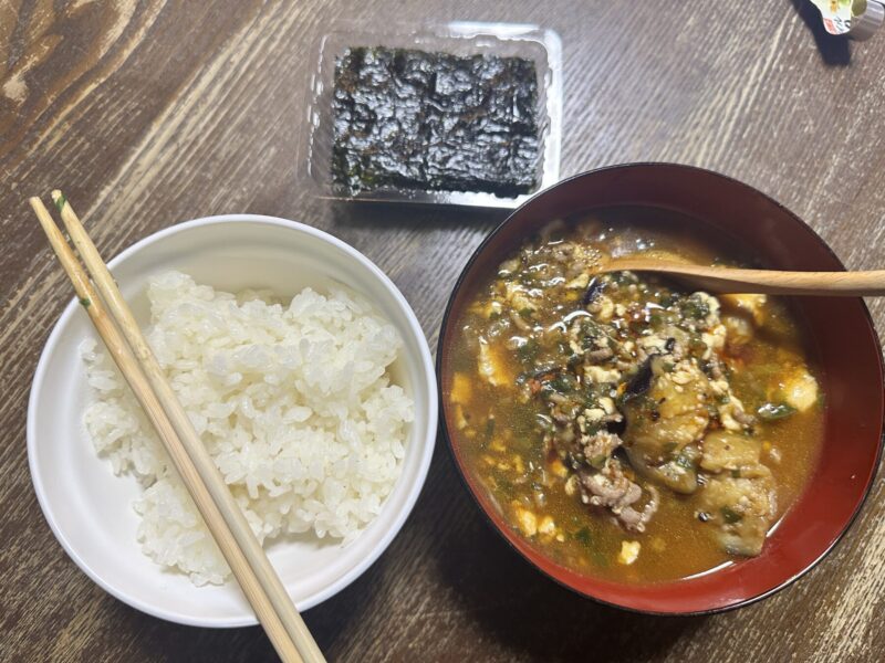 今日は、昨日失敗した”冷凍揚げなす”を使っての麻婆豆腐with揚げナス。今日はシンプル!