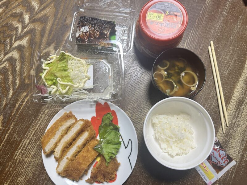 マーケットに寄って・・・、割引商品を漁った。760円。10日分ぐらいのキムチと、久しぶりの豚カツ、焼きサバの切り身・・・。肉と魚は今日消費・・・。高くついたなぁ・・・