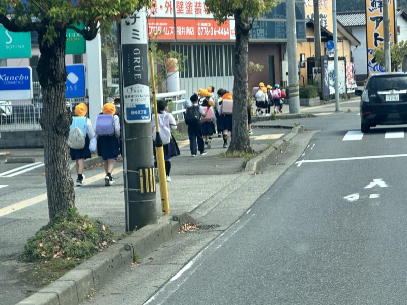街中に出ると、小学生の集団下校のグループと出会った。新1年生かなぁ・・・